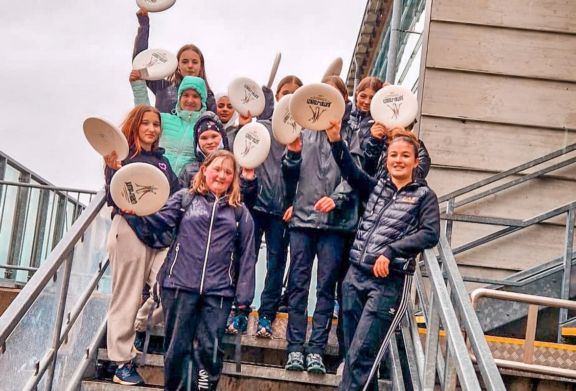 Frisbeegolf am Golm, die SchülerInnen hatten sichtlich Spaß dabei!